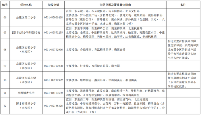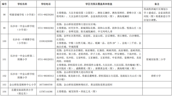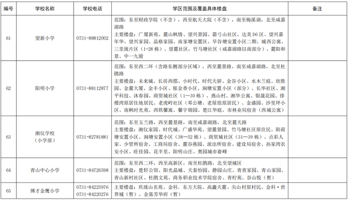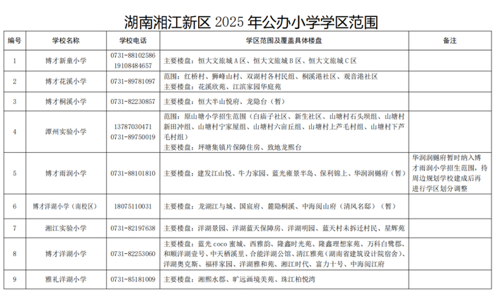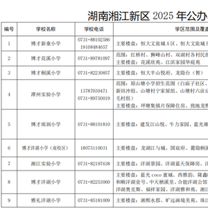 关于2025年湖南湘江新区公办小学学区范围及覆盖具体楼盘信息的公告