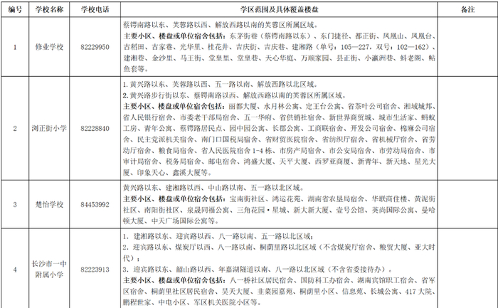 关于2025年芙蓉区公办小学学区范围及覆盖具体楼盘信息的公告