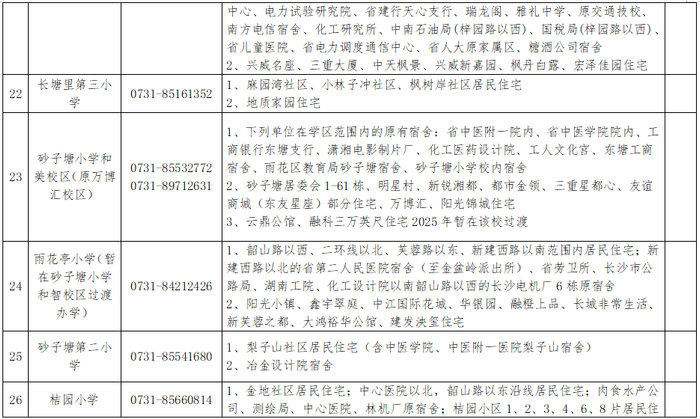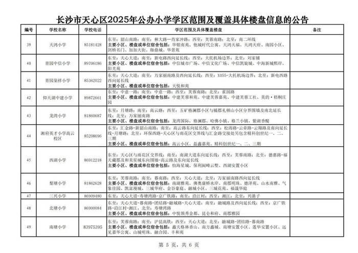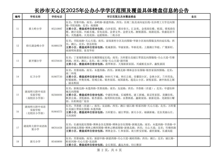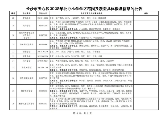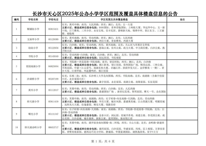 关于2025年天心区公办小学学区范围及覆盖具体楼盘信息的公告