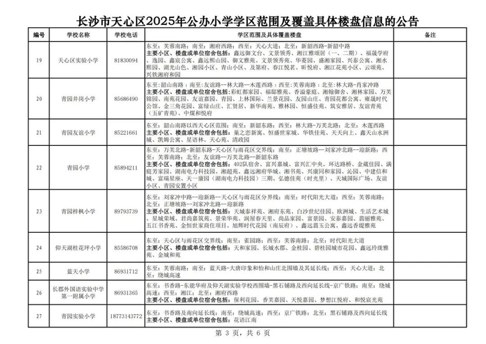 为保障广大市民对天心区公办小学学区划分的知情权,天心区教育局编制了2025年公办小学学区范围及覆盖具体楼盘信息,现予以公告。相关情况说明如下: