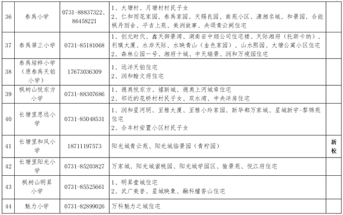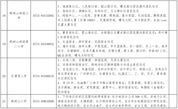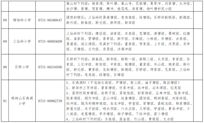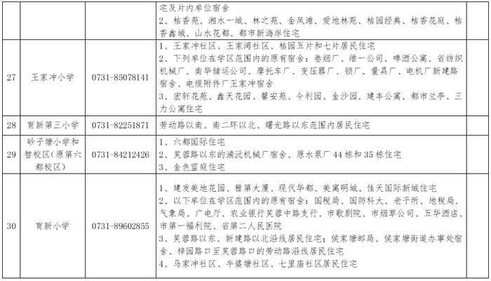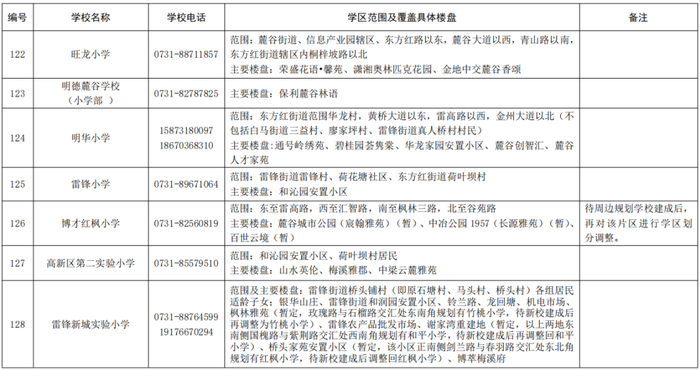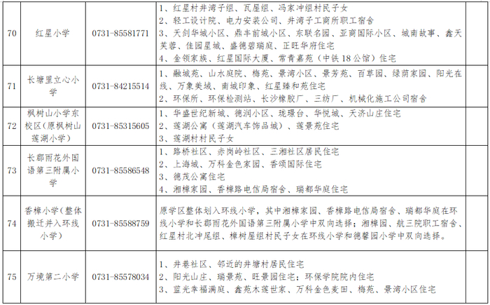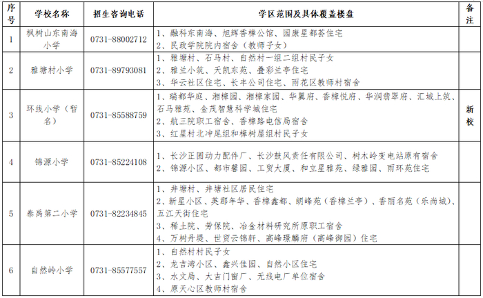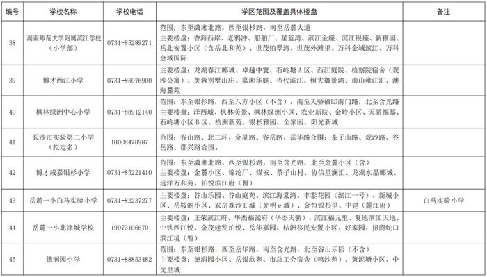 五、对湘江新区公办小学学区划分及入学政策有疑问的,请咨询湖南湘江新区管理委员会教育局基础教育处(0731-88999272,0731-88999894)及各学校(咨询电话见下表)。