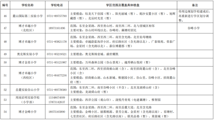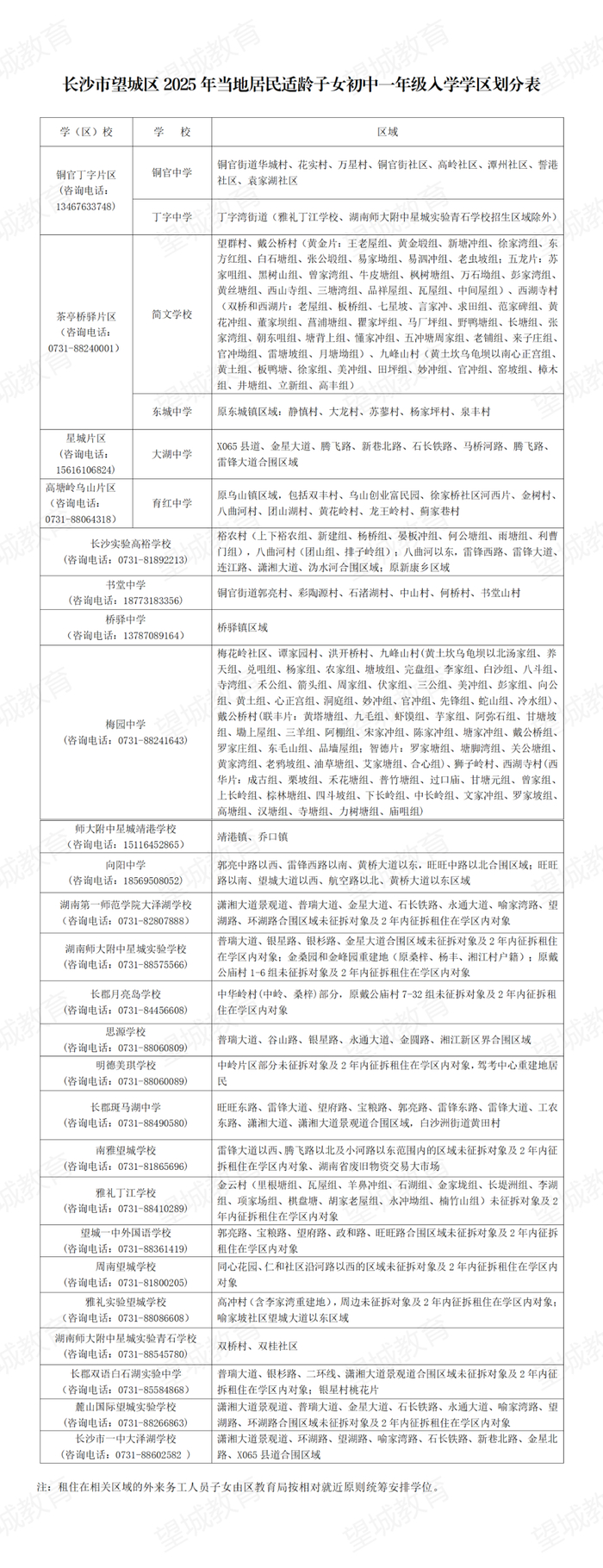 1.公办义务教育阶段学区划分由望城区教育局负责,有关学区划分问题以望城区教育局解释为准。