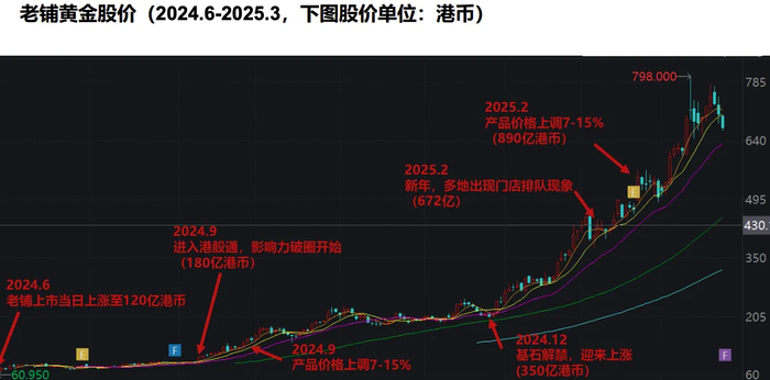 不过,据东吴证券分析师吴劲草、郗越3月30日发布的研究,自2024年6月上市以来,老铺黄金经历实质性的品牌破圈,期间金价和公司股价的共振上涨,也对公司品牌力形成起到了重要作用,但都是“无法模仿”的特质。