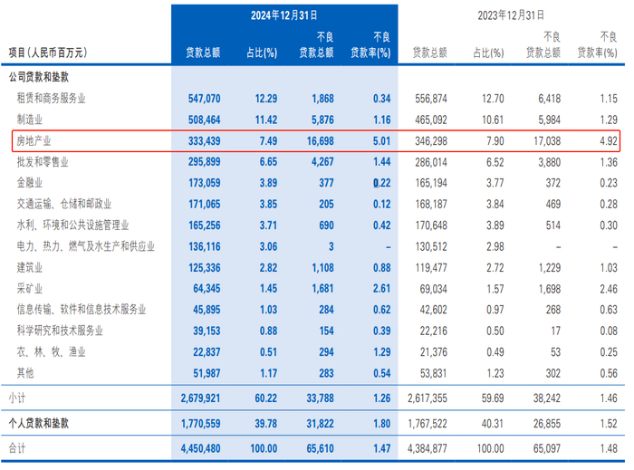比如房地产。年报显示,民生银行对公房地产相关授信余额3,951.64亿,同比下降5.84%,但不良贷款率逆势升至5.01%(上年4.92%)。