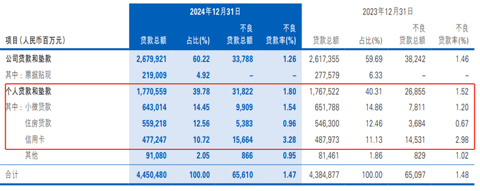 个人贷款不良率升至1.80%(+0.28pct),其中信用卡贷款不良率高达3.28%(+0.30pct)。