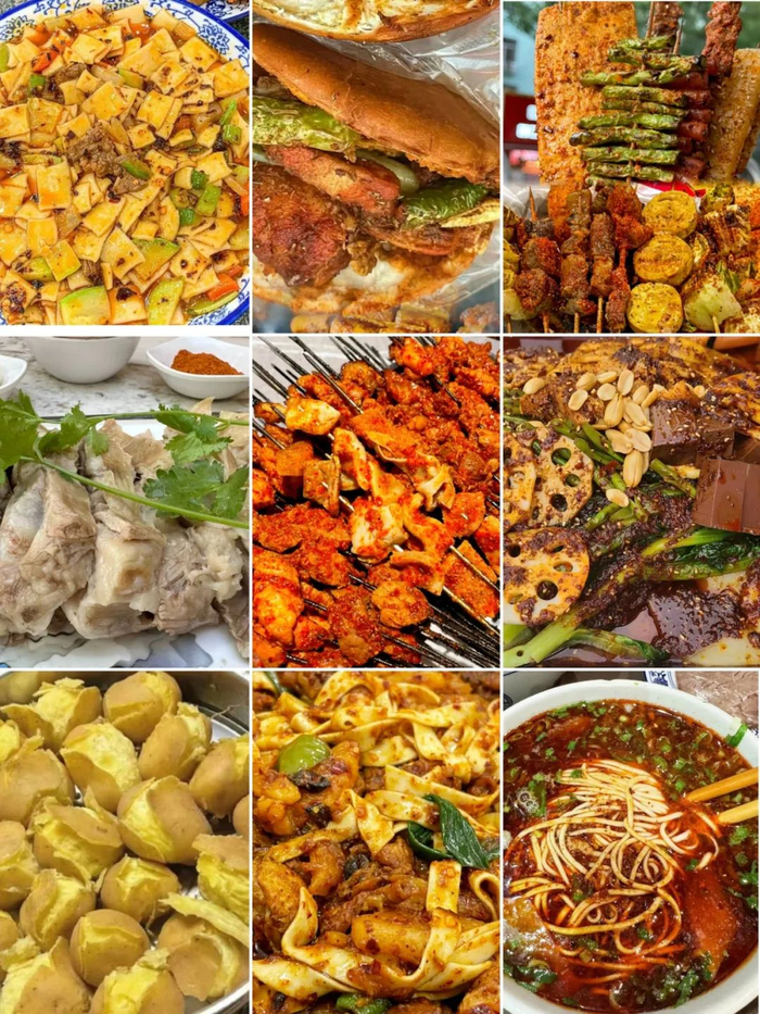 咱最爱的大盘鸡、烤肉、烧烤夹馍等