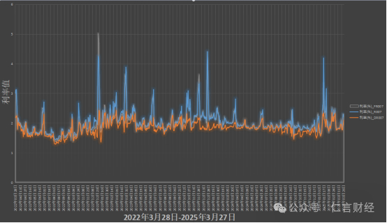 3、从DR007、R007和FR007的三条曲线都可以看出,2024年货币市场整体的流动性是趋于稳定的,出现波动的频率和幅度都不大,但到了2025年,这些波动明显加剧了。这说明了市场交易主体的活跃度在增加,也从侧面说明了,经济确实可能已经进入了修复期了。
