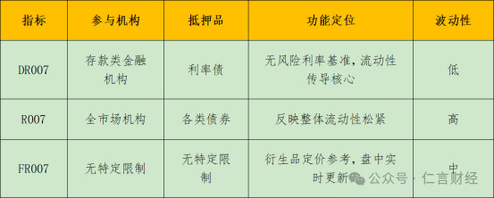 DR007被视为货币市场的“无风险利率”,信用风险低,波动性较小。