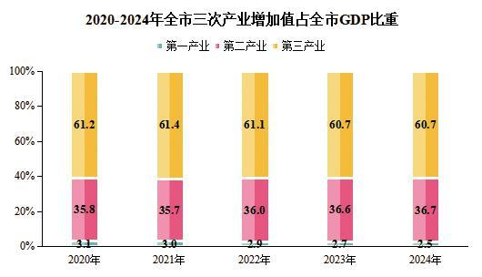 初步核算,全年生产总值(GDP)[2]13507.69亿元,按不变价格计算,比上年增长6.1%。其中,第一产业增加值343.26亿元,增长3.0%;第二产业增加值4961.25亿元,增长8.4%;第三产业增加值8203.18亿元,增长4.8%[3]。三次产业结构为2.5:36.7:60.7。按常住人口计算,人均GDP136063元(折合19105美元),比上年增长4.1%。