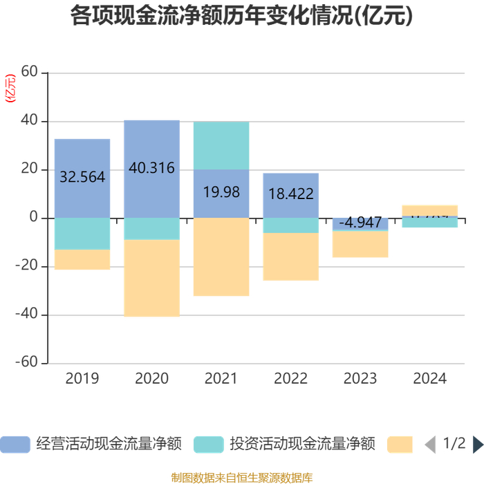 截至2024年,公司经营活动现金流净额为7892.77万元,同比增加5.74亿元;筹资活动现金流净额4.47亿元,同比增加15.26亿元;投资活动现金流净额-4亿元,上年同期为-6334.06万元。
