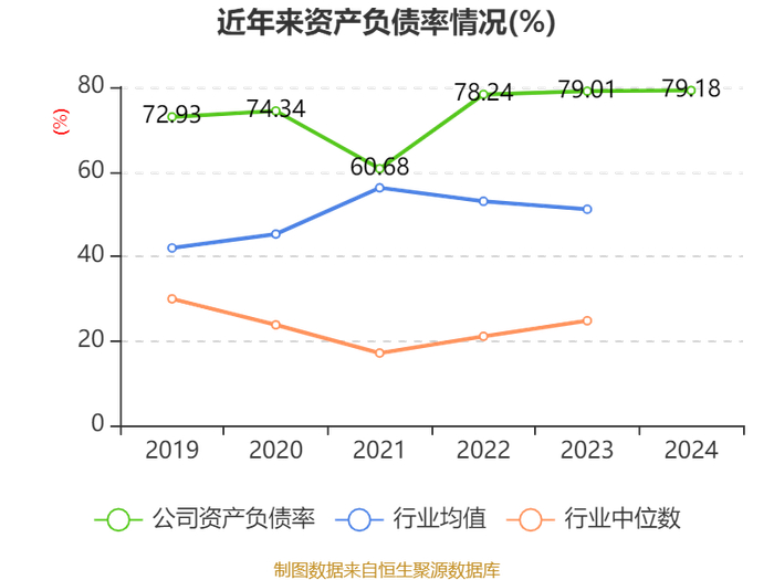 负债重大变化方面,截至2024年末,公司一年内到期的非流动负债较上年末减少13.03%,占公司总资产比重下降3.19个百分点;应付票据及应付账款较上年末增加13.45%,占公司总资产比重上升1.59个百分点;长期应付款合计较上年末增加61.19%,占公司总资产比重上升1.09个百分点;其他应付款(含利息和股利)较上年末增加326.41%,占公司总资产比重上升0.7个百分点。