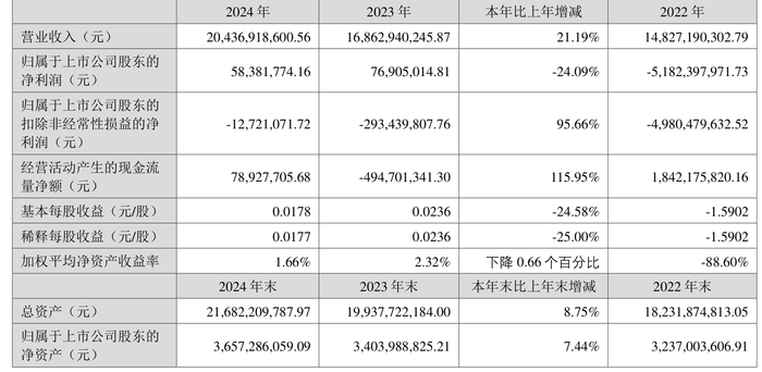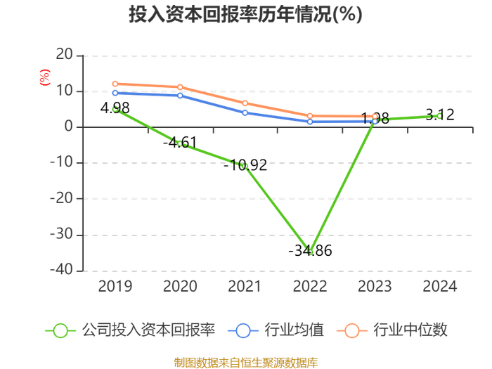 数据显示,2024年公司加权平均净资产收益率为1.66%,较上年同期下降0.66个百分点。公司2024年投入资本回报率为3.12%,较上年同期上升1.14个百分点。