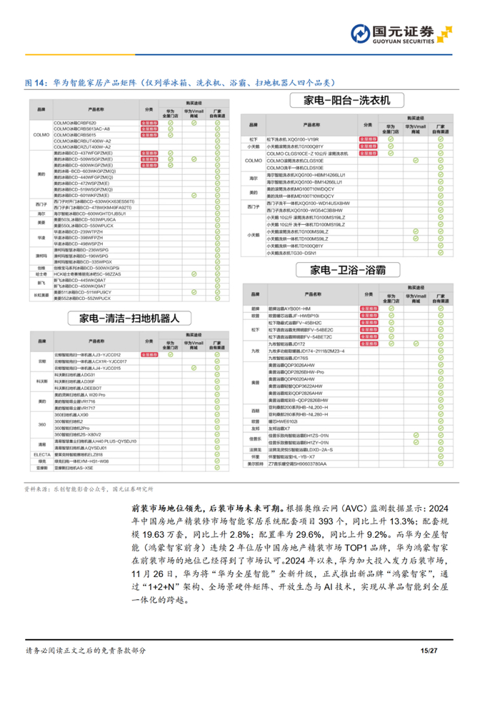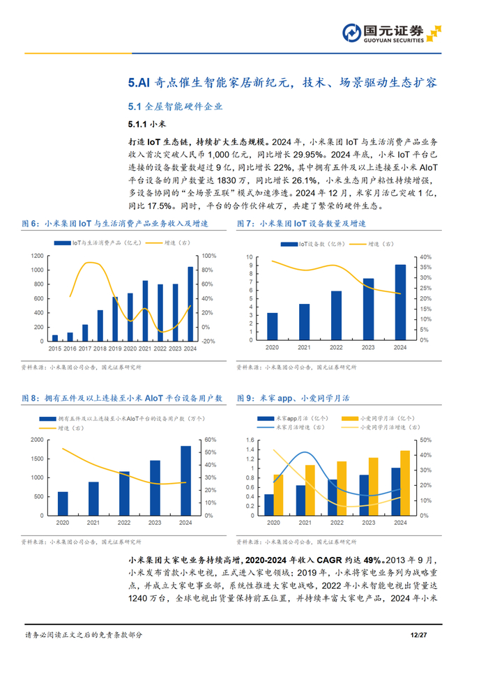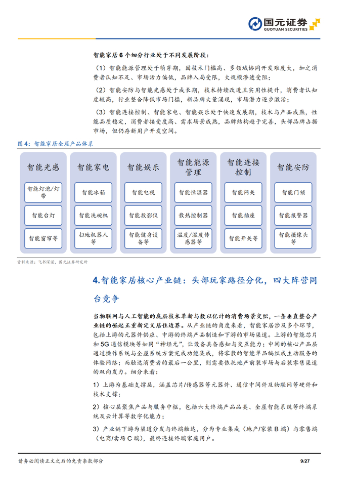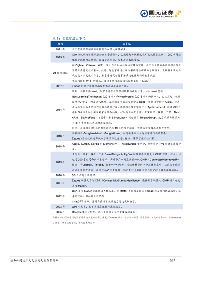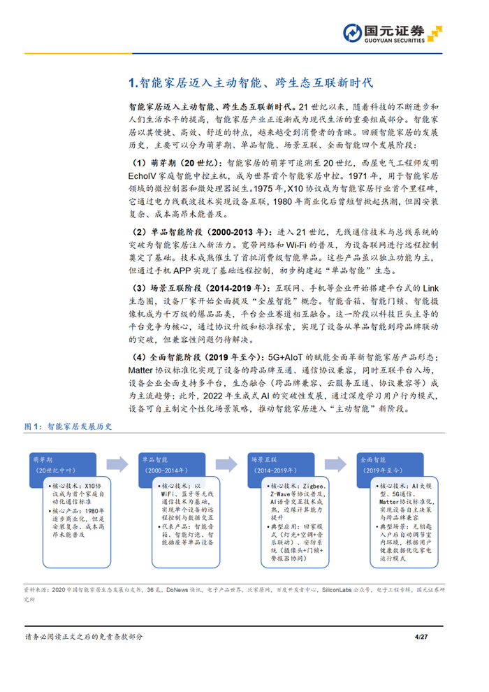 本报告摘自国元证券2025年4月1日已发布的《AI重塑智家时代,扩容开启万亿蓝海——智能家居深度报告》查看原文,具体报告及分析内容请详见报告。若因对报告的摘编等产生歧义,应以报告发布当日的完整内容为准。