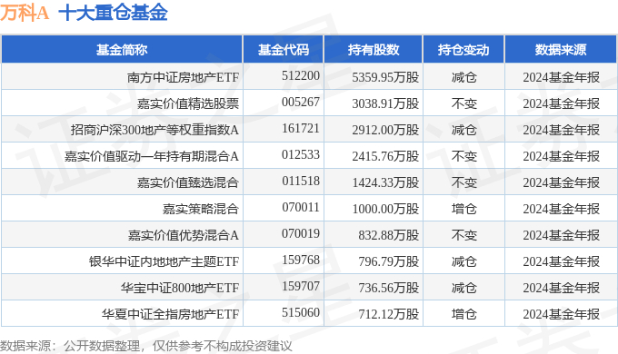 持有万科A最多的基金为南方中证房地产ETF,目前规模为42.96亿元,最新净值1.384(4月1日),较上一交易日上涨0.31%,近一年上涨3.41%。该基金现任基金经理为罗文杰。