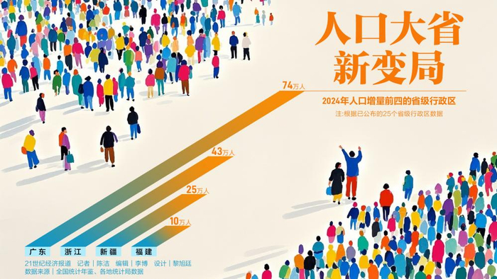 “在这样的情况下,浙江、广东仍然保持对外来人口的吸引力,与两省的经济结构和发展潜力相关。浙江在数字经济、制造业和现代服务业等领域表现突出,广东的产业升级和创新驱动使其对就业和创业颇具吸引力。”史薇表示。