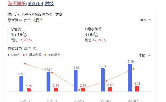 自2021年上市以来,海天股份在资本市场还算“一帆风顺”,已连续三年实现归母净利润的正向增长,2024年,海天股份营业收入15.19亿元,同比增长18.95%,归母净利润3.05亿元,同比增长25.97%。坐拥已是“难得一见”的资本业绩,跻身为环保水务“龙头”大哥,海天股份盈利双收,此次试水跨界光伏,决绝进入陌生领域的海天股份,究竟在焦虑什么?