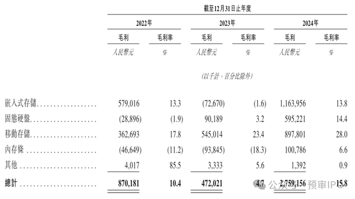 江波龙的所有产品中,移动存储的毛利率一直在逐年增长。各期内分别为17.8%、23.4%及28%。2024年,江波龙的所有产品毛利率均为正,所以整体毛利率水平有所改善。