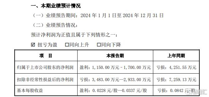 不过,最新业绩预告显示,泰尔股份在2024年成功扭亏,归属于上市公司股东的净利润在1150万元至1700万元之间。
