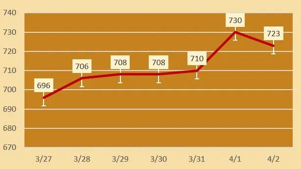 2025年4月2日,各品牌金店黄金零售价格仍在高位。据今日金价行情统计今日黄金首饰价格每克在751元至953元区间(工费另计),投资金条价格每克750元左右,白银价格7.8元/克。