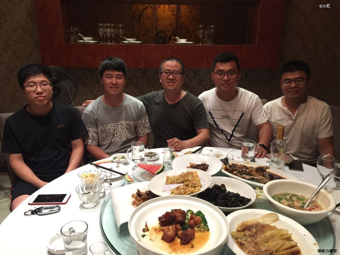 ● 做幕布期间郭晓力和同师门的同学聚餐:左1,胜凯,16年和郭晓力一起做头条号;左3,郭晓力学SEO时期的老师