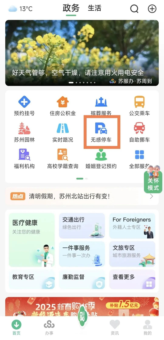 苏周到APP“无感停车”模块中