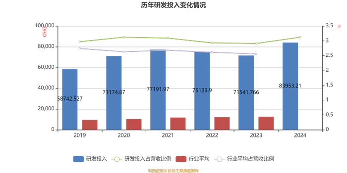 2024年全年,公司研发投入金额为8.4亿元,同比增长17.35%;研发投入占营业收入比例为3.12%,相比上年同期上升0.21个百分点。此外,公司全年研发投入资本化率为0%。
