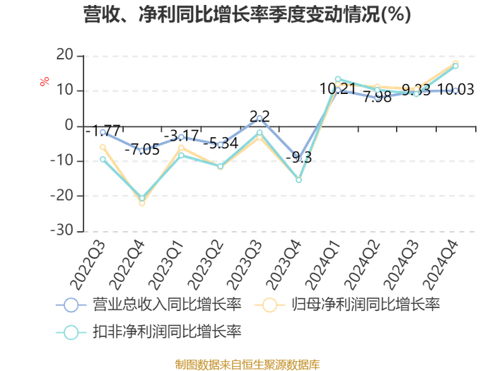 数据显示,2024年公司加权平均净资产收益率为21.76%,较上年同期上升1.04个百分点。公司2024年投入资本回报率为19.34%,较上年同期上升1.18个百分点。