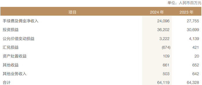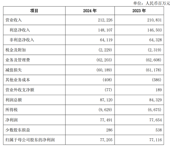 拆分来看,2024年兴业银行利息净收入1,481.07亿元,较2023年增长1.09%;但非利息净收入略有下滑,从上一年的643.28亿元降至641.19亿元,降幅0.32%。