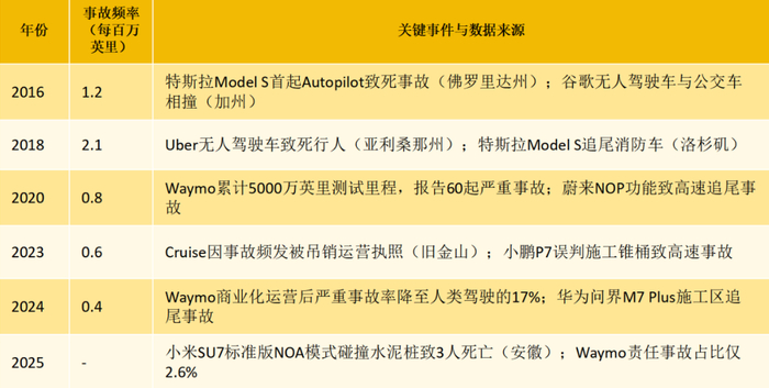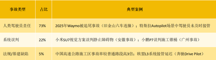 常见事故有与紧急停靠车辆碰撞、幻影刹车、逆向驾驶、未检测到行人或骑行者。