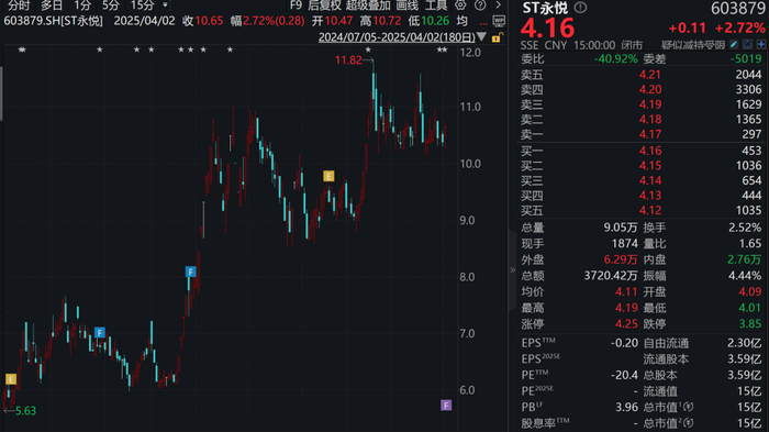 4月2日晚间,ST永悦披露年报,鉴于2024年度内部控制被出具标准无保留意见,触及其他风险警示的情形已经消除,且不存在触及退市风险警示和其他风险警示的情形,公司向上交所提出撤销其他风险警示申请。