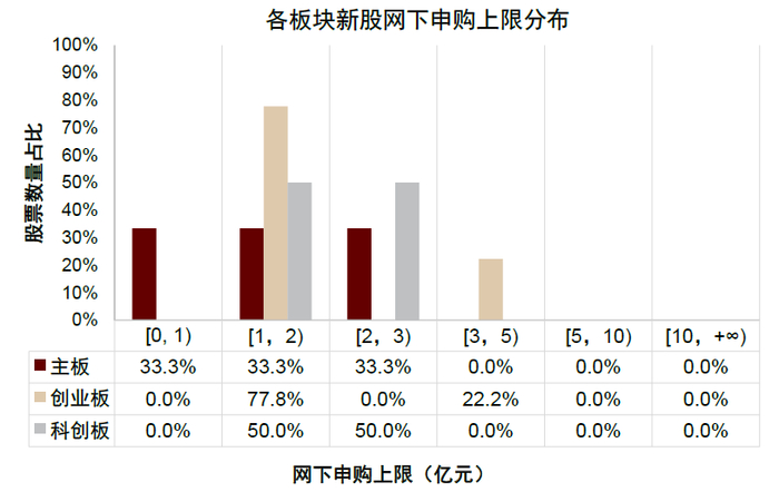 图表15:近三月各板块新股网下申购上限金额分布
