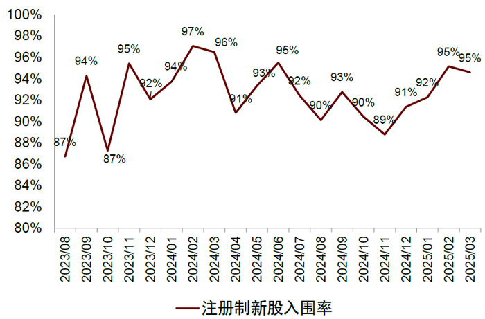 注:1)按初步询价起始日统计;2)截至2025/3/31;3)个股网下入围率 = 有效配售对象数量 / 网下初步询价对象数量