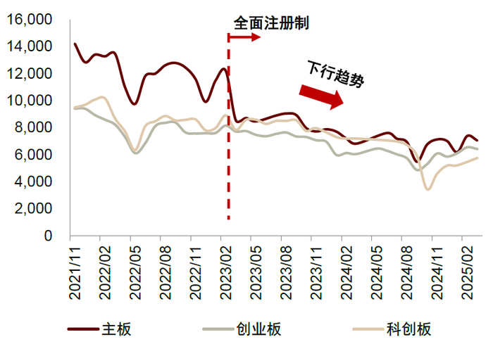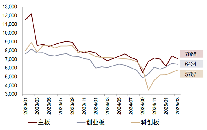 注:1)按初步询价起始日统计;2)截至2025/3/31;3)取各月新股网下询价账户数量均值;4)剔除网下询价锁定70%的新股