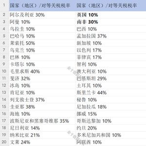 最低10% 美国对等关税税率清单一览(图表)