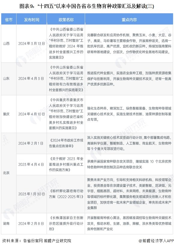 ——31省市生物育种行业政策汇总