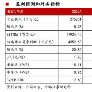 公司发布2024年年报:2024年营业收入2752.51亿元(+5.75%);归母净利润45.53亿元(+20.82%),其中,工业板块贡献利润 21.93 亿元(+3.95%);商业板块贡献利润 33.85 亿元(+1.05%);主要参股企业贡献利润 4.70 亿元(-12.98%);扣非净利润40.65亿元(+13.04%),经营现金流净额58.27亿元(+11.39%)。