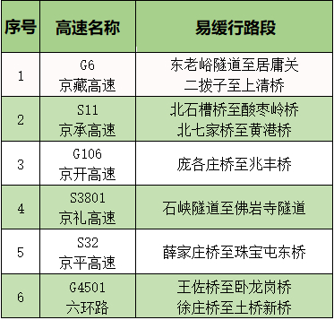 假期第一天祭扫、踏青、出游叠加,上午8-11时高速公路出京方向交通量大,京藏、京承、京港澳、京开、京礼、京平、六环路等高速部分路段可能会出现通行缓慢情况。