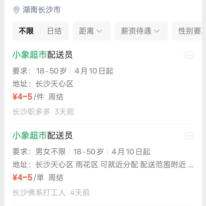 (小象超市前置仓即将开城长沙,目前正在招聘配送员)