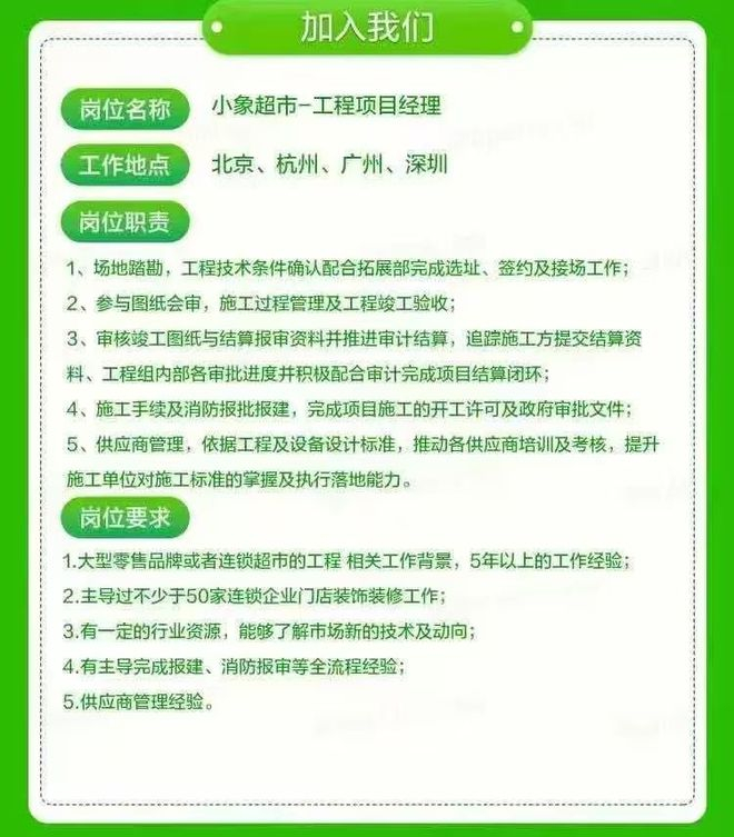 (小象超市招聘公告)