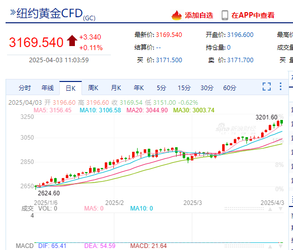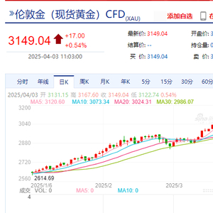 截至发稿,现货黄金报3149美元/盎司,纽约黄金报3169.54美元/盎司。