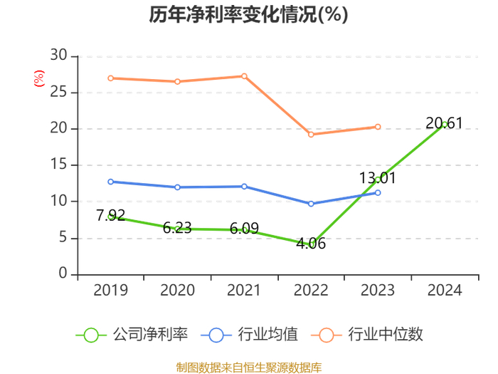 数据显示,2024年公司加权平均净资产收益率为21.59%,较上年同期上升6.84个百分点。