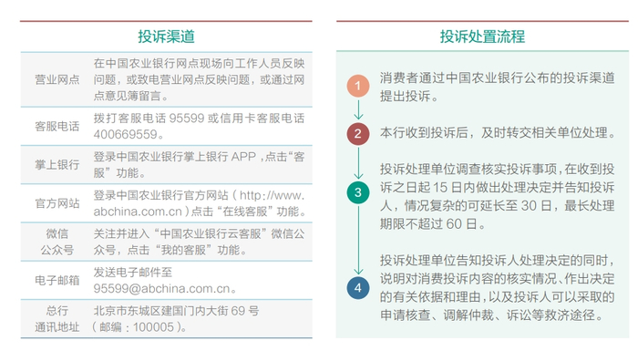 目前,农行的投诉渠道包括营业网点,客服电话,掌上银行,官方网站,微信公众号,电子邮箱,总行通讯地址等七种。