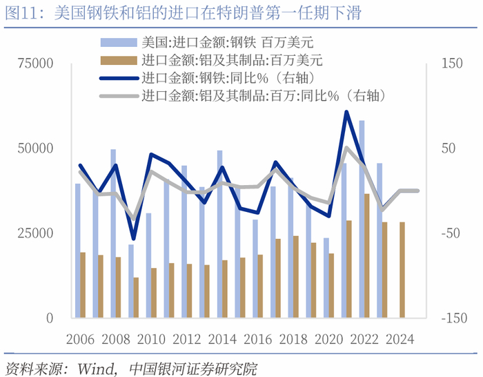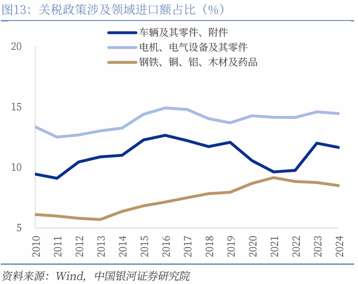 二是涉及军事安全和科技安全的关键制造业(钢铁、铝、汽车等)。产业角度看,新一阶段的关税政策将继续针对涉及重要国家安全的关键产业,或围绕两条主线。一是其汽车关税等强化传统制造业保护;二是抢占新兴产业制高点,预计对半导体、药品关税也将很快落地,直指中国在成熟制程芯片与原料药领域的追赶态势,为美国本土制药与芯片企业削弱外部竞争。