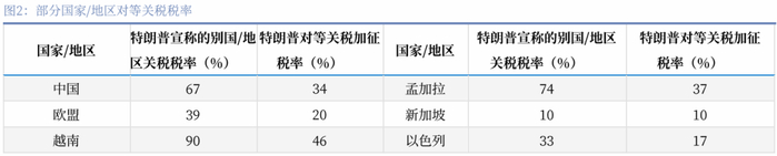 具体来看,特朗普援引 1977 年《国际紧急经济权力法》征收“对等关税”,其中10%普遍关税将于2025年4月5日生效。对其他额外关税超过10%的国家的政策将于4月9日生效。同时特朗普保留进一步反制报复的措施。