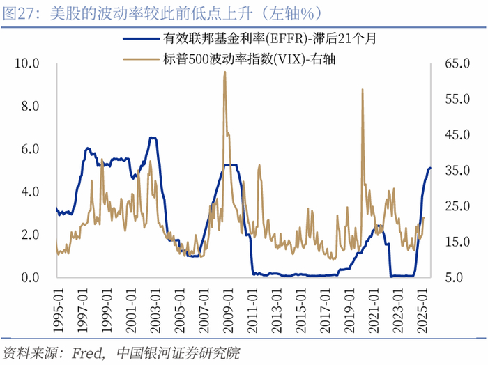 美股方面,经济下行担忧对企业名义利润增速和估值形成了双重挤压。在对等关税和其他针对特定品种的关税沟通尘埃落定前,美股在不确定性和经济下行风险之下可能尚不会结束调整,波动性也难以降低;下半年随着货币政策转向宽松、减税等刺激经济政策落地希望加强,以及经济下滑预期的减弱,美股反而可能存在企稳回升的概率。