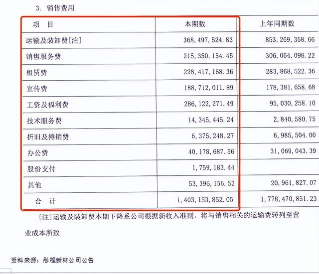 与之不同的是,在《彤程新材:中策橡胶集团有限公司2020年审计报告》中,中策橡胶的销售费用主要是由运输及装卸费用、销售服务费用、租赁费、宣传费、工资及福利费等项目构成的。形成反差的是,中策橡胶在招股书中2020年度只有仓储费没有运输费用,而在彤程新材:中策橡胶集团有限公司2020年审计报告》中,中策橡胶运输及装卸费用占销售费用比例最高。
