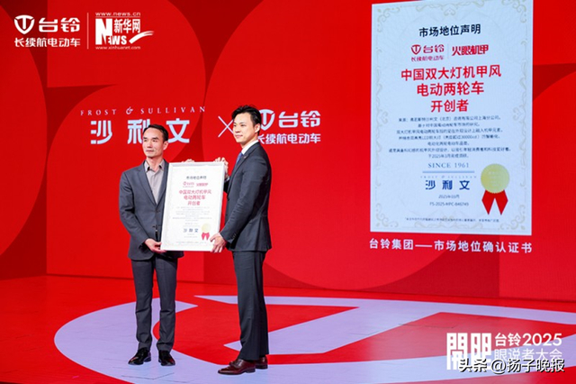 发布会上,全球增长咨询公司弗若斯特沙利文为台铃颁发了“中国双大灯机甲风两轮电动车开创者”认证书。沙利文大中华区合伙人兼董事总经理杨晓骋在发言时说道:“当下行业仿冒乱象依然存在,我们呼吁广大企业坚持原创,像台铃一样持续探索产品造型与技术方面的创新。”
