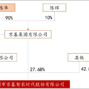 据公开资料,京基智农前身为1979年成立的深圳市养鸡公司(后更名康达尔),1994年成为A股农牧上市第一股;2018年京基集团通过要约收购入主,实控人由罗爱华转为陈华家族。目前,公司大股东为深圳市京基时代实业有限公司和京基集团有限公司,分别持有公司29.44%和27.68%股份,其中,京基集团为深圳市京基时代实业有限公司的100%控股股东,而京基集团有限公司由陈华先生90%控股,因此,陈华间接持有公司51.41%的股权,为公司实际控制人。