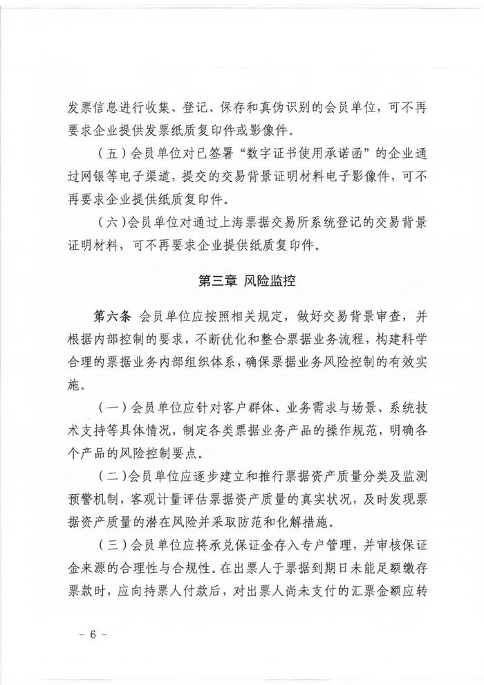 解读:该条款部分银行早有相关规定,即:票面收款人持有“经我行分支机构承兑且未经企业再次背书转让的票据”向我行任意分支机构申请办理贴现时(即“收款人回贴”),基于我行在承兑环节已对基础关系进行了真实性审核,在办理贴现时免去再次提供交易合同与发票资料,提升审批和放款效率。但多数银行并未灵活办理该类贴现业务,还在刻板、机械的进行二次审核。