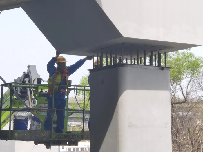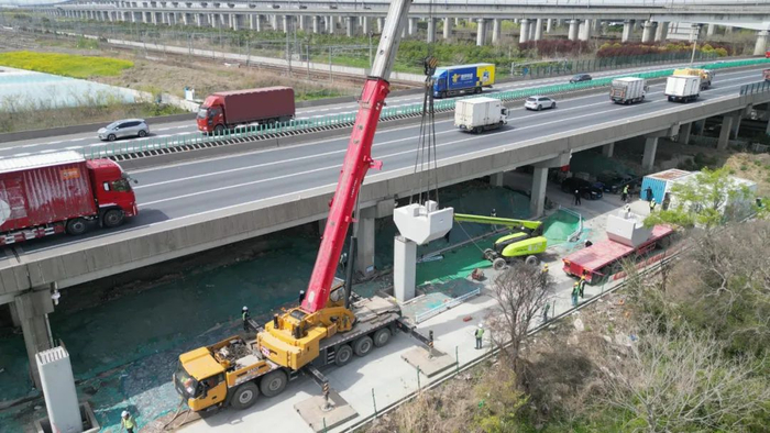 嘉定区新闻办介绍,G15公路(沈海高速)嘉金段6拓8改扩建工程有新进展:2标顺利完成全线首段盖梁的架设,全标段施工正在有序推进。详见↓